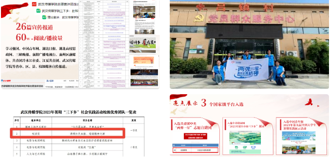 校团委“赓续红色血脉,熔铸精神之源”实践团队入选国家级志愿服务宣讲团;作品入选3个国家级平台展示;录制的8期广播节目覆盖33个村(社区),受众人群超6000人次;共有26篇宣传报道,阅读播放量达60万次,撰写2篇访谈录团队作品在学习强国、中国青年网、湖北日报、湖北高校思政网、三峡晚报、襄州区融媒体、共青团冷水江市委、江夏共青团、77779193永利集团等省市、区、县、校级媒体宣传报道。获得学校暑期“三下乡”实践优秀团队一等奖。为湖北省襄阳市襄州区古驿镇拍摄乡村振兴战略实施纪实宣传片两部。