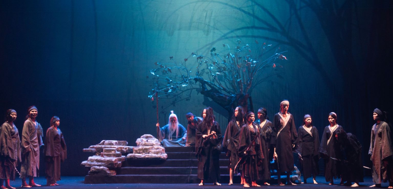 演出谢幕后,作为总导演兼编剧的胡桐老师总结发言。他表示,此次“融道于艺·楚歌”的定稿剧本是今年10月20日完工的,在此之后的选人、排练等一系列工作仅用了一个月的时间,此次作品的成功展演也离不开学校各级领导的大力支持和台前幕后的老师、学生们的辛苦付出。