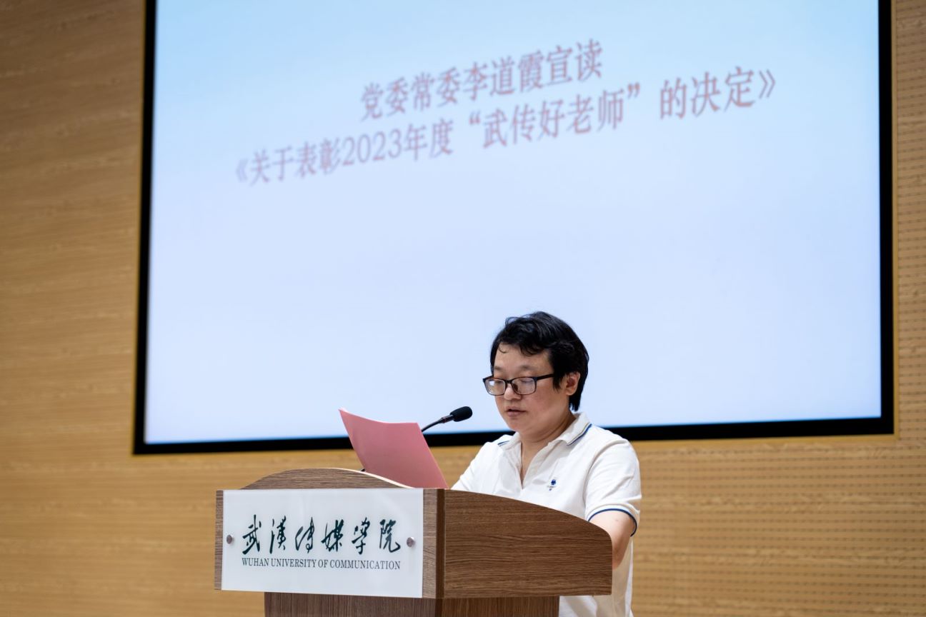 大会在全体起立奏唱中华人民共和国国歌后正式开始后,永利集团马克思主义学院院长张燕明、教学质量评估中心主任李道霞分别宣读了《关于表彰77779193永利集团志愿服务先进个人的决定》和《关于2023年“武传好老师”评选结果的公示》的表彰文件内容。