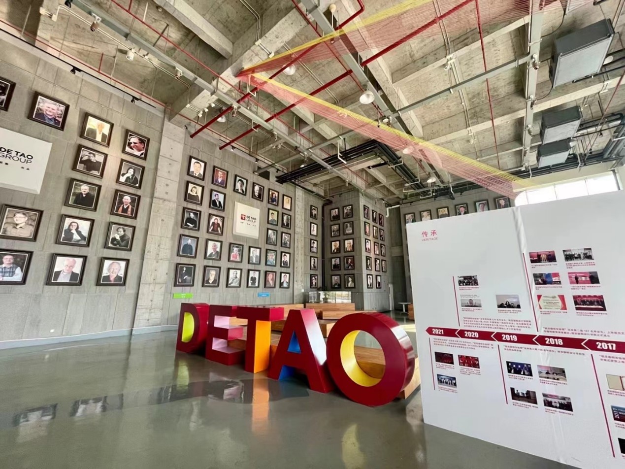 下午,调研组参观了由建筑名家王澍设计的中国美术学院象山校区,中国美术学院电影与电视学院党委书记兼副院长王其全教授一行接待了调研组。国美校园借鉴中、西方大学校园的发展模式,打造了一个园林式、开放式的校园环境。在参观完“党建国美之路”党建文化长廊后,调研组深受启发,这条红色长廊,展现了中国近现代史的“党建国美之路”,通过文字、图片、灯光、音效、多媒体技术等综合打造了一本多角度、立体化的国美党史“教科书”。随后,王其全书记与调研组进行座谈,双方就学院的人才培养、师资情况及产教融合等方面进行了交流。