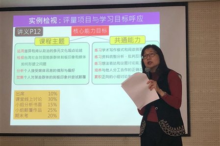 11月18日、19日下午,由教师发展中心主办的“基于OBE课程体系的核心能力、学生评量设计实务”工作坊在1409多功能教室举办,特邀台湾大学教师发展中心组长李纹霞博士和台湾大学教师发展中心教学助理评析员李承恩主讲。本次培训由校长助理、人事处(教师发展中心)姚晓菊主持,教务处(科技处)、教学督导与评估中心全体人员及各学院教学管理干部及教师共127名教职工参加了培训。