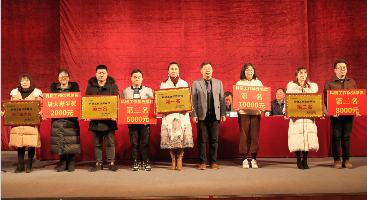 为表彰先进、树立典型,学校决定对2019年度教学、学生、就业、科研、党政综合“五项”工作考核优秀及进步 最大的教学单位和行政职能部门综合业绩奖、创新工作奖及优质服务奖单位予以表彰。副校长王爱民宣读《关于发放2019年度学科竞赛指导教师奖励的通知》和《关于表彰2019年度优秀科研成果的决定》。副校长胡学知宣读《关于表彰2019年度考核“优秀”、“良好”教职工的决定》和《关于表彰2019年度教学单位、行政职能部门考核优良及进步单位的决定》。