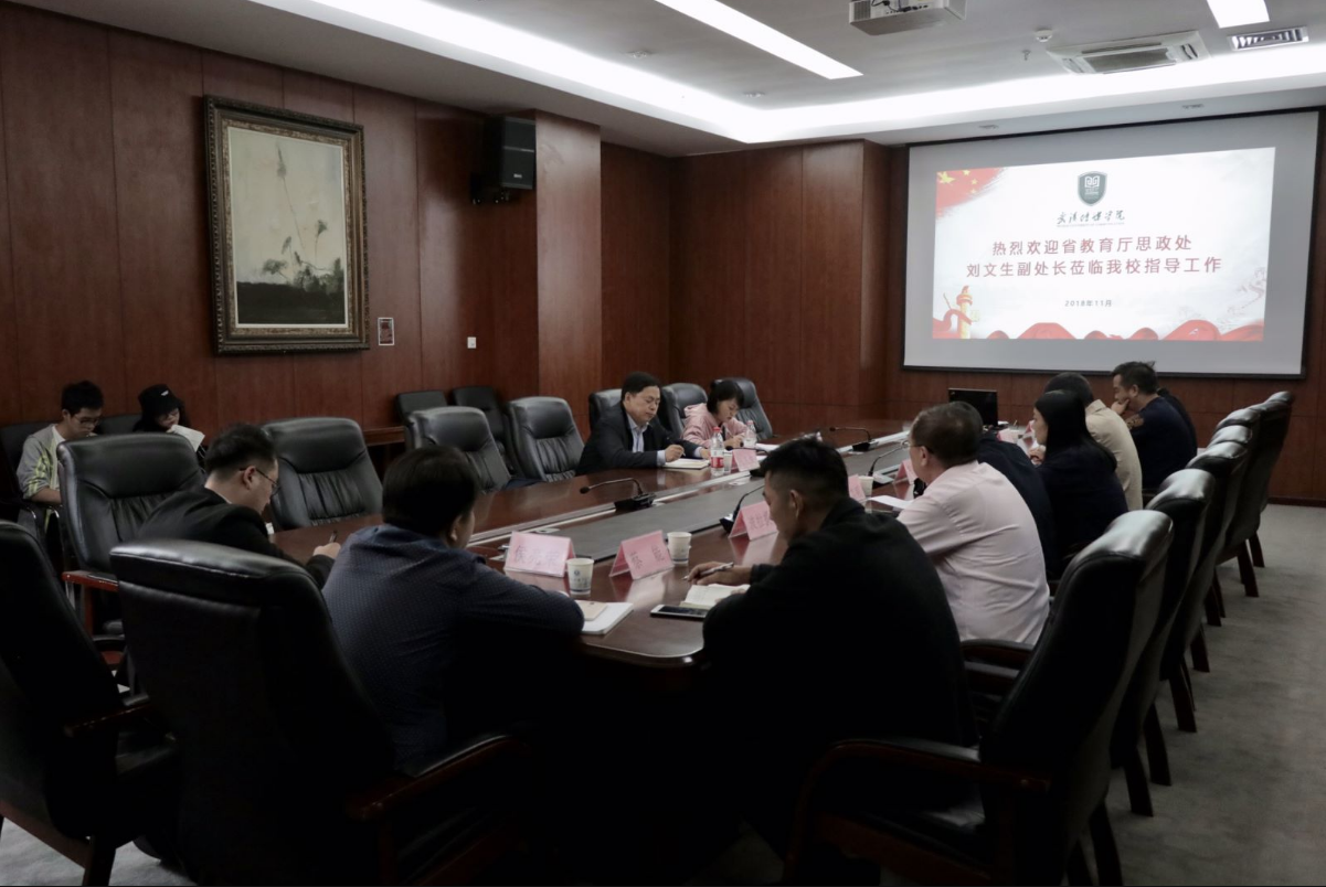 武传新闻网讯(文/记者 万言午 图/摄影见习记者 彭泉锦)11月1日下午,湖北驻鄂教育工作小组组长、湖北省教育厅思政处刘文生副处长来校调研新疆学生工作。