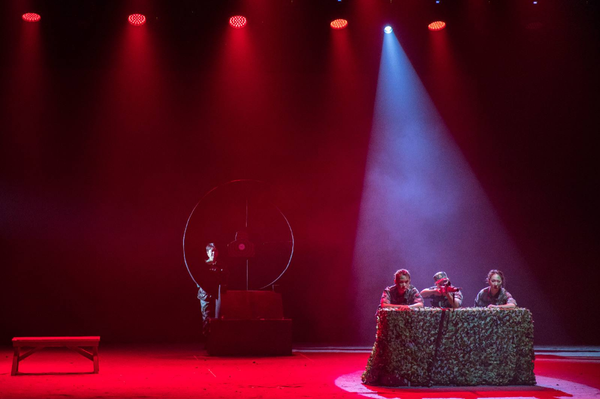倪聪、刘晓萱、郑瑶三位老师同饰神枪手董琳一角,让话剧《狙击手》赚足了师生眼球。《狙击手》讲述了董琳(倪聪饰)在狙击手选拔赛前训练时时与自己内心的懦弱和勇敢相互挣扎,每当面临抉择开枪的时候,内心深处的两面(郑瑶饰懦弱一面、刘晓萱饰勇敢一面)就会出来干扰自己的思维判断,最后当董琳想放弃的时候,得到了队长的正确引导最终战胜心魔,找回了自信,克服了困难。饰演懦弱董琳的郑瑶老师表示,由于与角色性格差异太大,她始终无法进入角色,“排练时学生导演叶子豪对照台词一句一句指导,让我逐渐进入角色。”