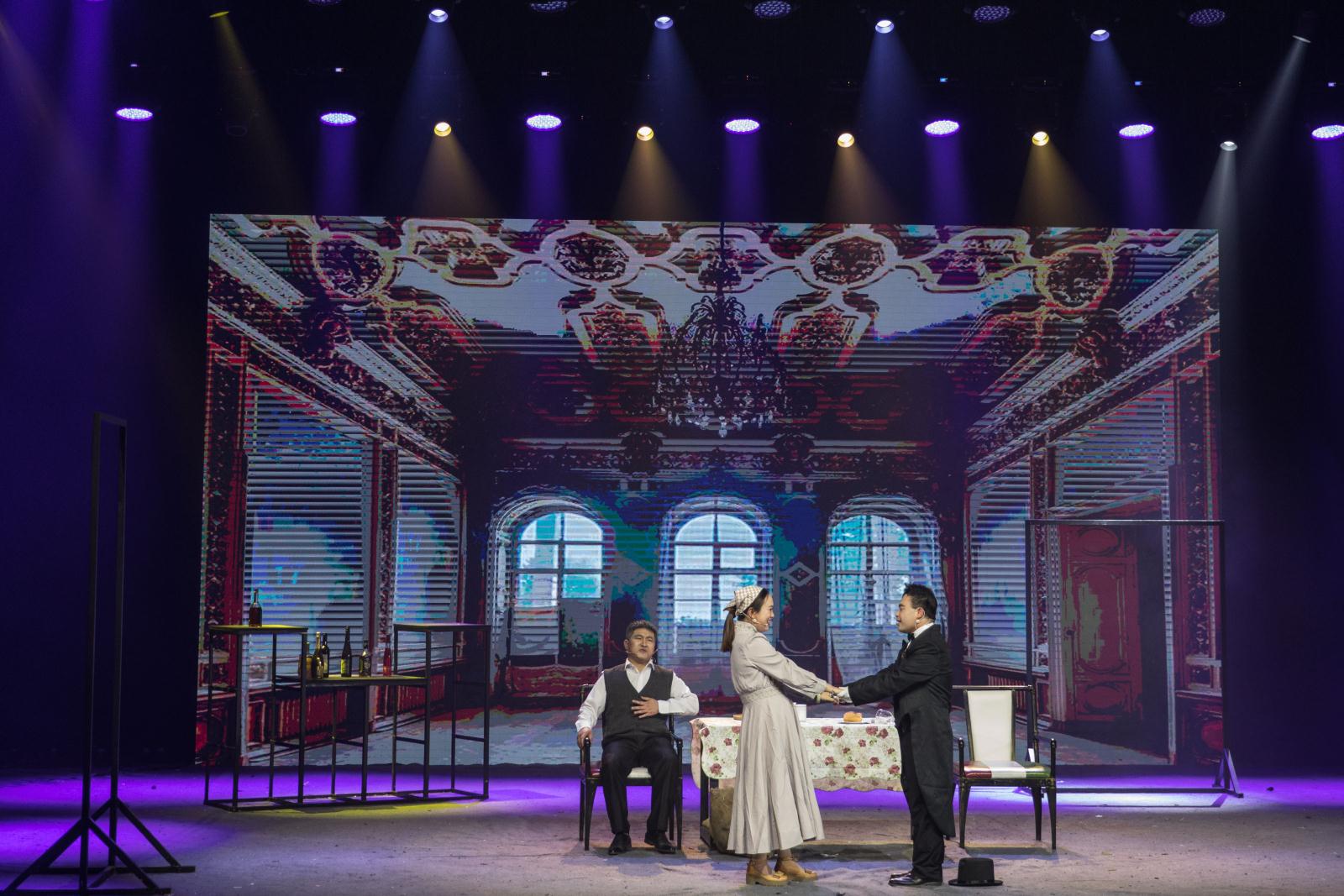 话剧《爱情三部曲》由《致青春》《小丈夫》《金婚》三段爱情故事组成,分别讲述了青涩、平淡和相濡以沫三个爱情片段。该话剧由李哲、范懿、夏露、胡桐、梁爽、王龙、董末末七位老师出演,三对青年、中年、老年恋人从争吵到和好,笑点与泪点并存,获得现场观众掌声不断。“这部剧由于人数多,不容易配合,但学生导演高诗雅很有耐心,帮助我们协调肢体动作、舞台站位,这让大家很有动力。”李哲说道。