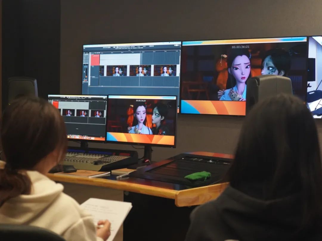 郑小噗老师以国产动画《白蛇缘起》《青蛇劫起》和国产电影《七月与安生》《怒火重案》等经典配音片段为案例,向同学们详细讲解了在配音过程中如何理解角色的情感及语气变化。随后,郑老师亲身指导示范,也让同学们在话筒前实战演练,体验一次“沉浸式”的配音创作。