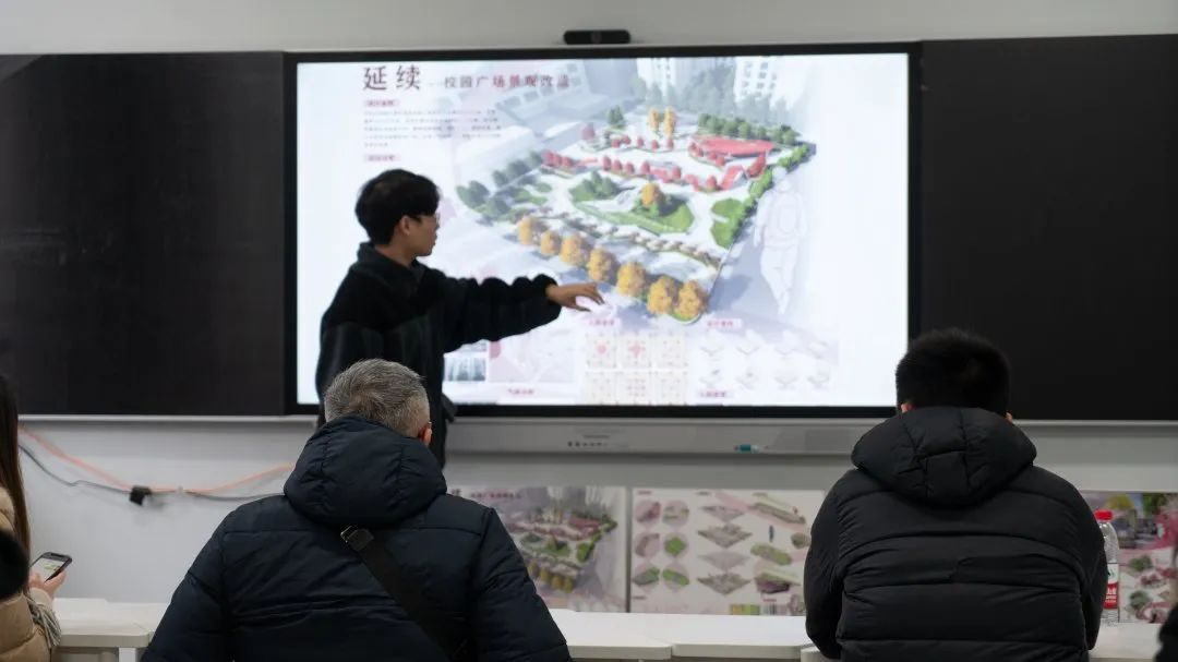 本次交流活动,永利集团学生的8幅作品以校广场景观改造作为设计主题。同学们依次阐述了自己的设计理念和方案,并先后与Logan进行了学习、交流。作为有着丰富经验的设计师,Logan的点评简洁而精准,对于以梅花为主要设计元素的作品,他认为应该留有更多空间,不用铺满整个景观设计;对于以钢琴键为主要设计元素的作品,Logan首先对其设计理念表示赞同,并指出,作品的呈现如果能与琴声相结合则会更加生动,整个交流过程让永利集团学子收获颇丰。