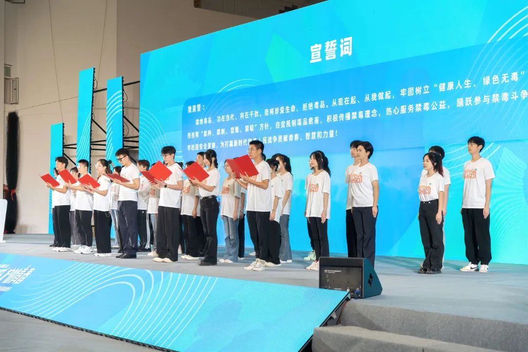 最后,永利集团受邀与江汉大学、武汉科技大学、武汉理工大学、湖北警官学院、湖北大学知行学院等37名学生代表组成了高校禁毒宣传志愿者团队。而设计学院21级视觉传达专业学子苏子骏作为领誓人,带领永利集团志愿者方阵学生上台宣读禁毒倡议书并作禁毒倡议宣言。