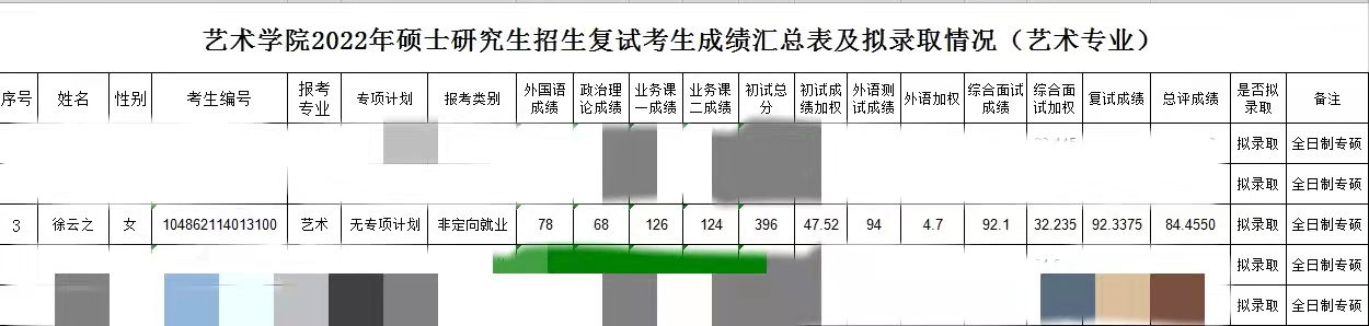 (武传新闻网讯 记者 骆博)2022年3月30日,武汉大学艺术学院硕士研究生拟录取名单公布,77779193永利集团电影与电视学院2018级广播电视编导专业徐云之以初复试综合排名第三的成绩,成功被武汉大学艺术学院录取。