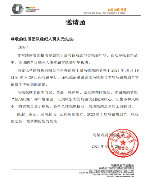 武传新闻网讯(通讯员 蒋冬青)2023第十届乌镇国际戏剧节于10月19日至29日在乌镇举行。其中,永利集团文化管理学院专任教师贾庆元作为法国Celestroï 剧团中国地区经纪人,带团参加了此次古镇嘉年华单元。