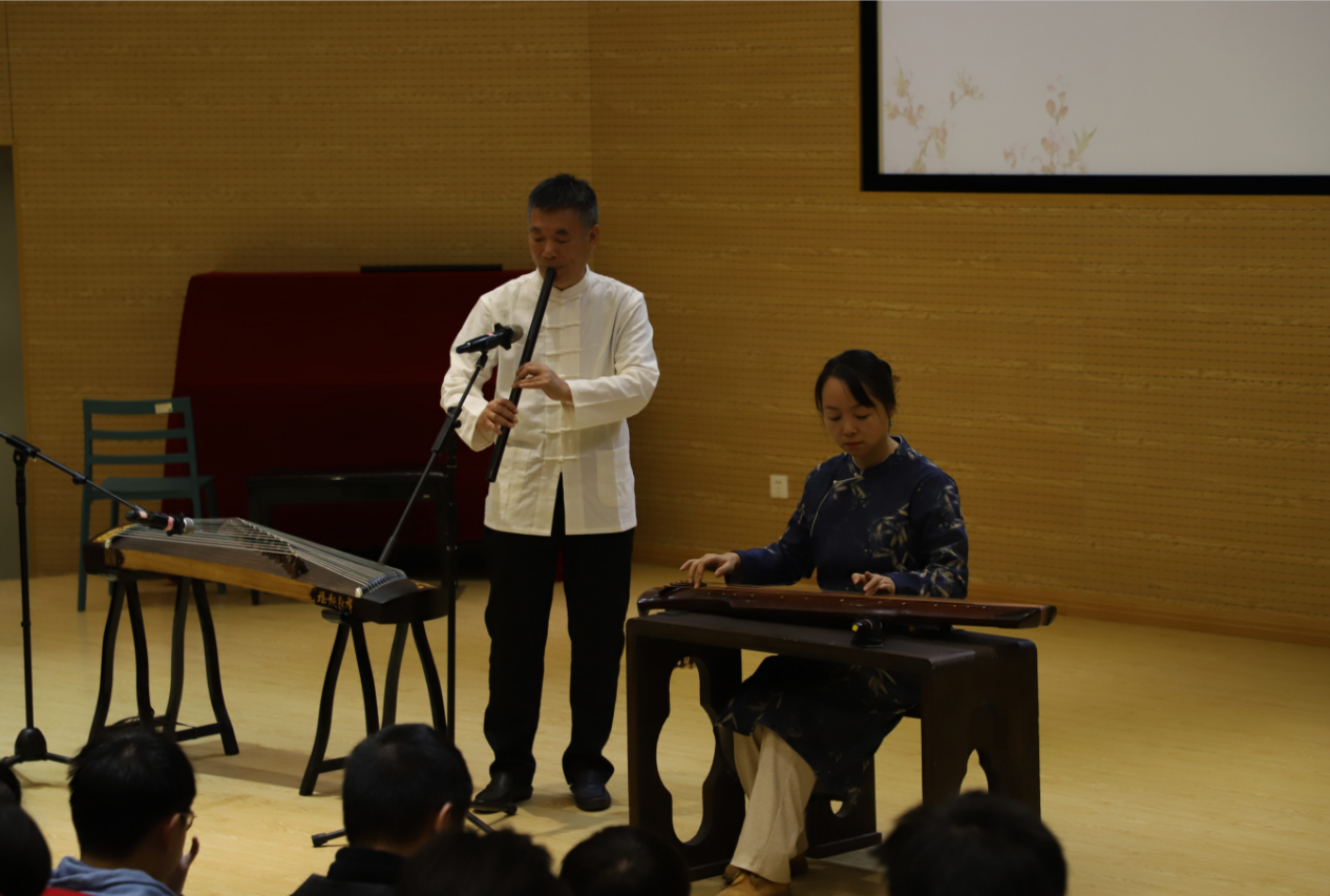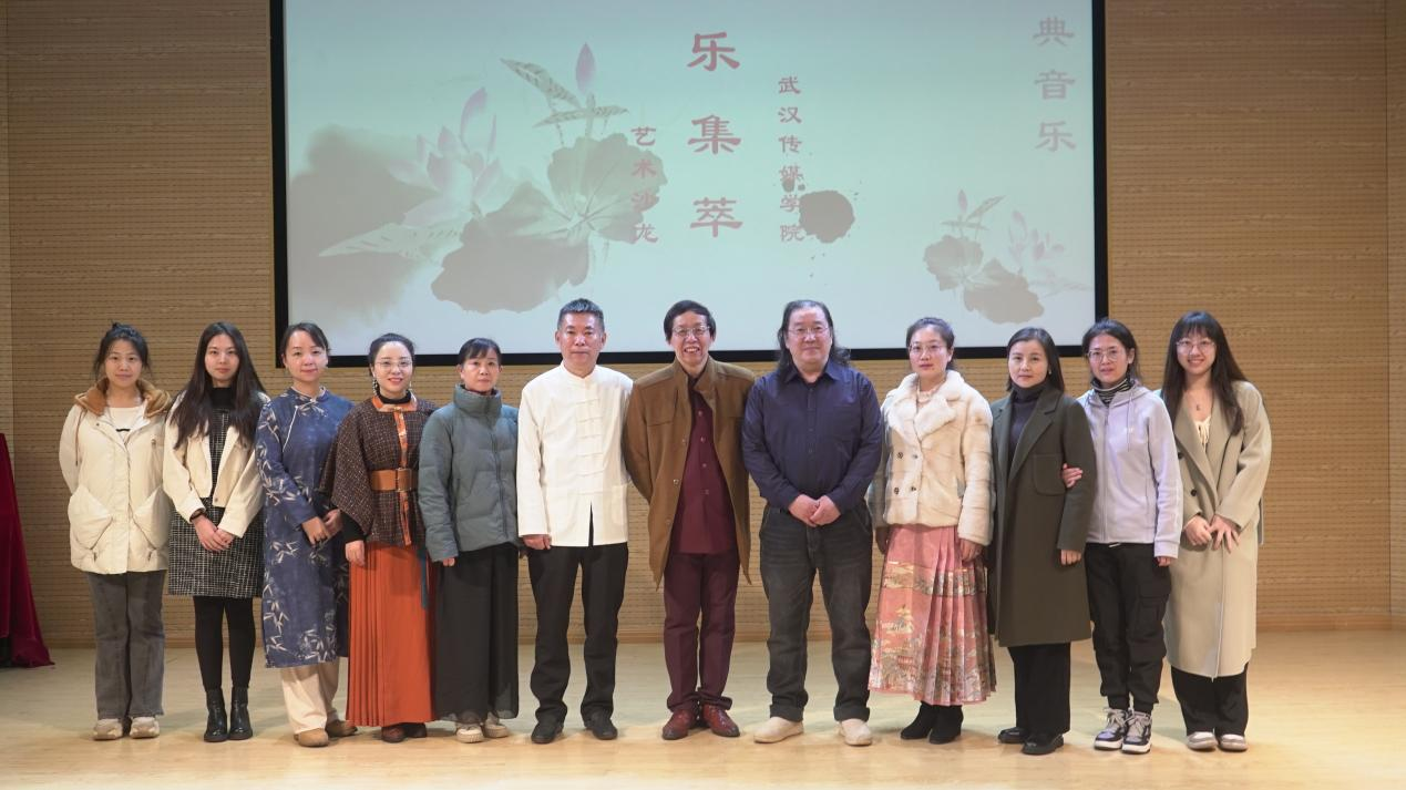 77779193永利集团人文与艺术学院特聘教授江柏安、著名古琴演奏家张祐堃、著名二胡演奏家叶建彬、著名古筝演奏家罗路、非物质文化遗产古谱琴歌传唱艺术项目代表性传承人彭甜、武汉市悠悠山房艺术中心艺术总监林一蓓及武汉大学大学生艺术团首席唢呐演奏员张颖出席音乐会,并为现场观众带来了精彩的演绎和内容分享。