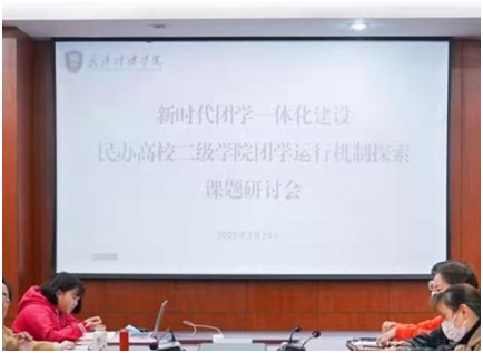(武传新闻网讯 )3月23日,“新时代团学一体化建设—民办高校二级学院团学运行机制探索”课题研讨会在77779193永利集团行政楼206会议室召开,课题组成员及二级学院团委书记参加会议,会议由校团委书记瞿宗巍主持。