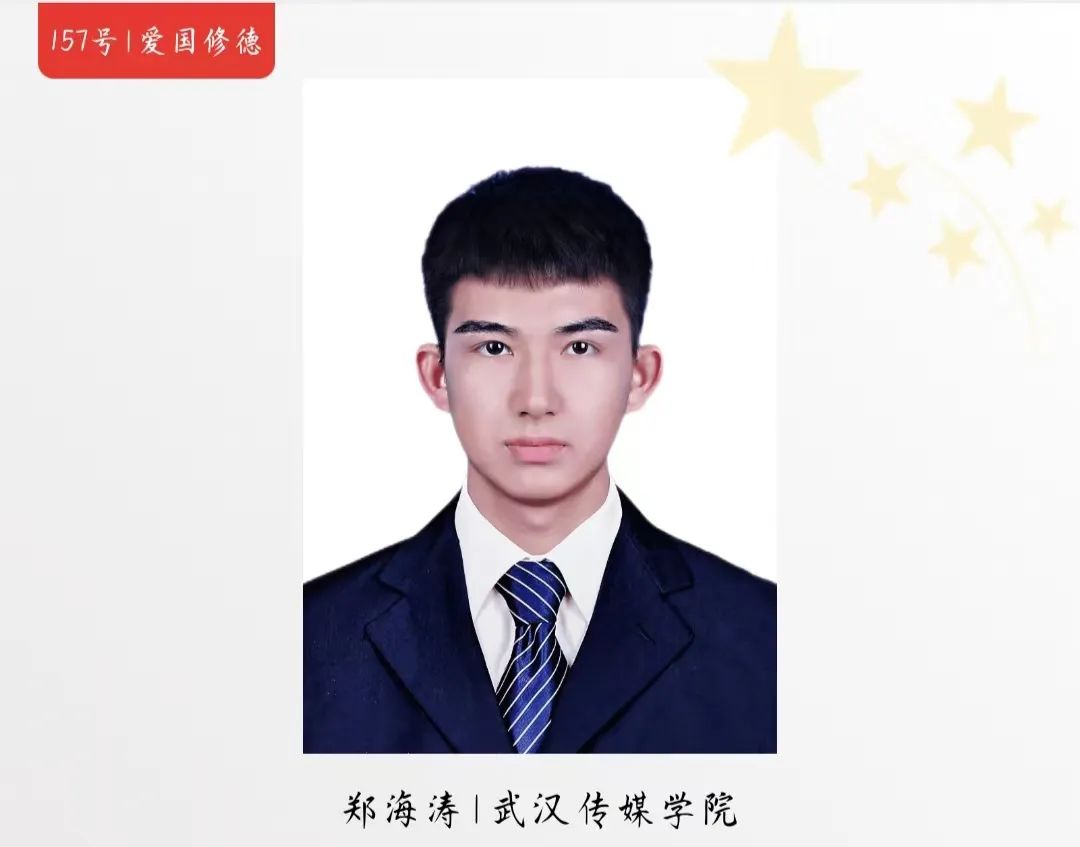 曾获国家奖学金、大学生艺术节一等奖、新闻采编三等奖等荣誉奖项的他,积极投身于各类志愿服务活动,服务时长超900小时。其带领的暑期“三下乡”社会实践团队荣获湖北省优秀实践团队,还曾担任湖北省教育厅“百校联百县”项目学生负责人。
