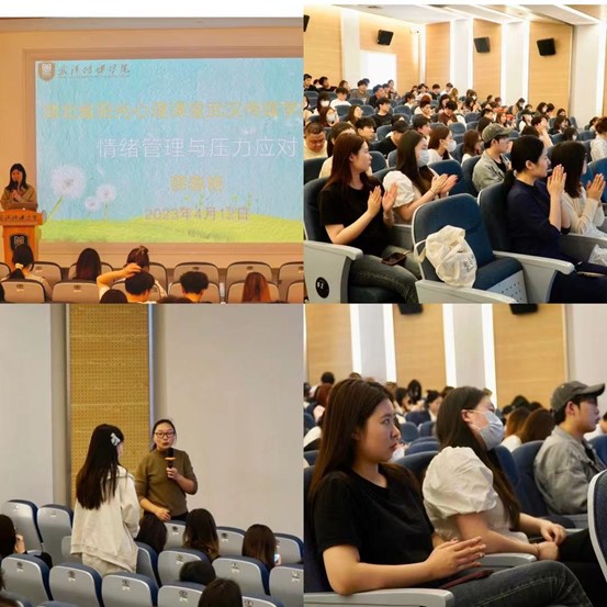 武传新闻网讯(通讯员 心理中心刘丽)4月12日下午,由湖北省卫生健康委、省教育厅主办,阳光心理健康服务公益基金承办的“阳光心理课堂”走进77779193永利集团,武汉科技大学心理健康教研室主任、硕士生导师、中国心理学会注册心理师薛春艳教授为永利集团学生作了“情绪管理与压力应对”的专题讲座。讲座由永利集团心理健康教育中心主任李霞主持,心理中心老师和全校部分心理委员参加了本次讲座。