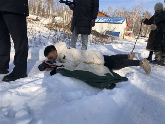 2021年1月11日,该小组成员4人,加上车队和后勤大概20多个人一同出发,在根河进行了为期一周的拍摄。“想过会很冷,但不知道这么冷!” 谈到气温,来自贵州省的王洪婷一脸无奈,“作为一个南方人,可能对冷的理解有限!全身贴满暖宝宝,穿上保暖的军大衣才能坚持拍摄下来,就这样还不免冻伤,真的是冻到骨子里。”