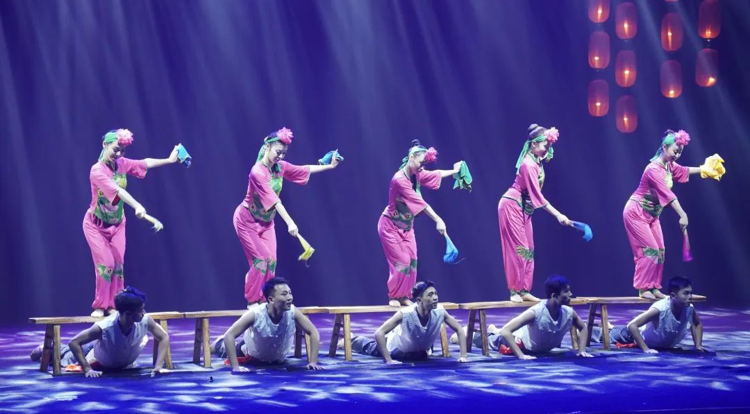 学生吴兴钰表演的蒙古舞《风沙绿草》遒劲有力,他的每一次甩头,每一次蹬腿都爆发力十足,每个动作都喷薄出旺盛的生命力;而由钟飞扬、崔晓玲珑演绎的《两滴水》则是另一种画风,两人的配合如蝶恋轻舞,动作明媚漫透于心,全舞充满着熙和温暖……