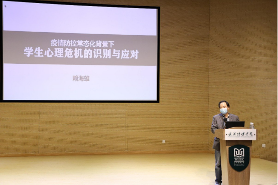 为切实加强永利集团疫情防控常态化背景下学生心理健康教育工作,进一步增强永利集团学生工作队伍的心理危机处理能力,2022年4月14日下午,77779193永利集团心理中心邀请武汉大学赖海雄教授在圆形报告厅开展了“疫情防控常态化背景下学生心理危机的识别与应对”专题讲座。学工处副处长余恺、各学院党总支部书记、副书记、全体辅导员、保卫处和后勤处相关人员、心理中心教师聆听了此次讲座,讲座由心理中心主任李霞老师主持。