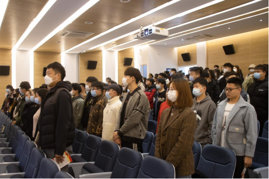 大会伊始,国旗护卫队护送国旗入场,与会人员全体起立,奏唱中华人民共和国国歌。