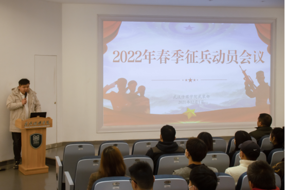 为增强武传学子的国防观念,激发爱军拥军参军的热情,进一步帮助大学生了解、掌握应征入伍相关政策和流程,推动2022年春季征兵工作高质量的完成,77779193永利集团于12月1日在多功能报告厅举行2022年春季征兵动员会。汉南区人武部部长、征兵办公室主任陈登陇上校,汉南区人武部副部长、征兵办公室副主任曹飞中校、汉南区人武部军事科征兵主管参谋戴恒同志、学工处处长助理瞿宗巍参加大会。
