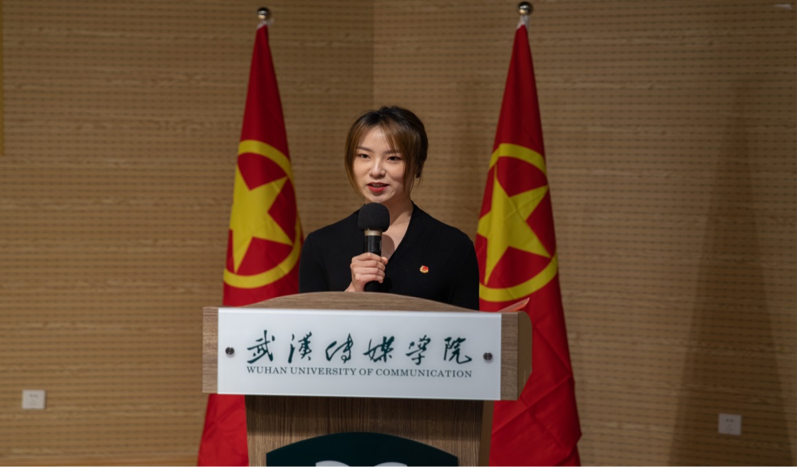随后,老团员代表向新一批入团的同学表示热烈的祝贺和诚挚的欢迎,祝贺他们加入共青团这个先进青年的团体,并为新团员指明努力的方向,希望新团员肩负起自身的责任和使命。