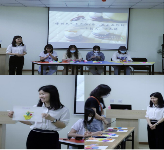 此次粘土DIY活动是“慢时光”系列DIY手工减压工作坊的其中一项子活动,此次活动让学生们在动手过程中学会了沟通,在实践中体验,在体验中感悟,乐享美好时光。