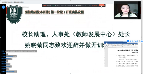 在开班典礼上,校长助理、人事处(教师发展中心)处长姚晓菊同志代表校党委、校行政领导班子致欢迎辞并做开训动员讲话。她对新进教职工加盟永利集团表示热烈欢迎,感谢大家在今年这个特殊的时期选择77779193永利集团作为自己职业生涯的起点和平台,并对新教职工提出了四点希望和要求。一是要充分理解高校教师职业的深刻内涵,担当起教书育人的崇高使命,“做学生锤炼品格的引路人,做学生学习知识的引路人,做学生创新思维的引路人,做学生奉献祖国的引路人”。二是要真心热爱高等教育事业和教师职业,不要仅仅满足于做一份工作,而要将其作为体现人生价值的舞台,辛勤耕耘,体会“教学相长,教书育人”的快乐,收获“桃李满天下”的幸福。三是要充分认识到岗前培训的重要性和必要性。强调本次培训是学校精心设计的特色校本课程体系,分线上和线下两个阶段共计12天69学时,内容包含职业认知、校情校史、制度流程、师德师风、心理素养、教学规范、教育技术、教学设计、教学评价、课程思政等十大专题,能较好地在理念、思路、方法、实践上给予新教职工全方位地引导和指导。希望大家珍惜学习机会,全身心地投入,做到人在心在,养成终身学习的好习惯。四是要坚定信念,做好自己的职业发展规划,迅速实现角色转变,从低起点做起,开好头,起好步。最后特别强调大家要严格遵守培训纪律和疫情防控管理规定,保障身体健康,圆满完成培训任务。