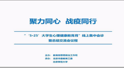 5月25日是全国大学生心理健康日,下午14:30,由教育部思想政治工作司主办,北京市委教育工委、北京师范大学承办的“线上集中会诊暨总结交流会”以网络视频会议形式召开。永利集团学工处大学生心理健康教育中心全体教师、各学院党总支书记、全体辅导员参加了此次学习交流会。