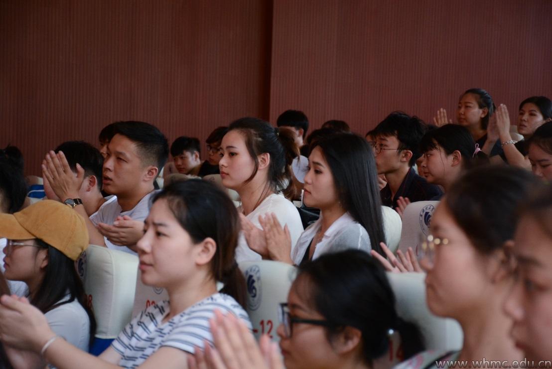 校团委副书记余佳妮致辞。她表示,开展社会实践活动是贯彻党的教育方针的重要措施,同时也是加强高校思想政治教育的重要途径。余佳妮指出,今年永利集团大学生暑期社会实践活动的主题是“青春大学习、奋斗新时代”,围绕这一主题,永利集团选派骨干教师和优秀学生,组成永利集团有史以来,人数最多、规模最大的一支实践队伍赴黄梅县开展社会实践。最后,她还向即将前往黄梅县的学生们提出了三点希望:在实践中了解国情,认知社会,在实践中虚心学习、增长才干,在实践中遵守纪律、确保安全。