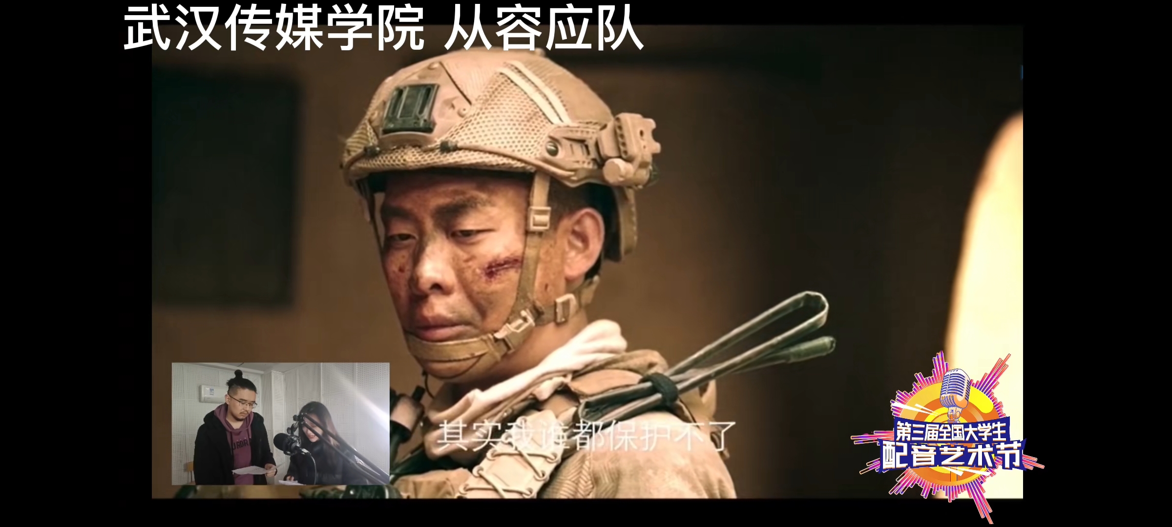 影视组“从容应队”的作品是截取自电影《红海行动》中的一个片段。队员谌普表示,由于对配音的经验不足,一开始作品的进度非常慢。直到指导老师来了之后,他们将之前的一切打翻重来,反复去磨,最终完成了本次作品。