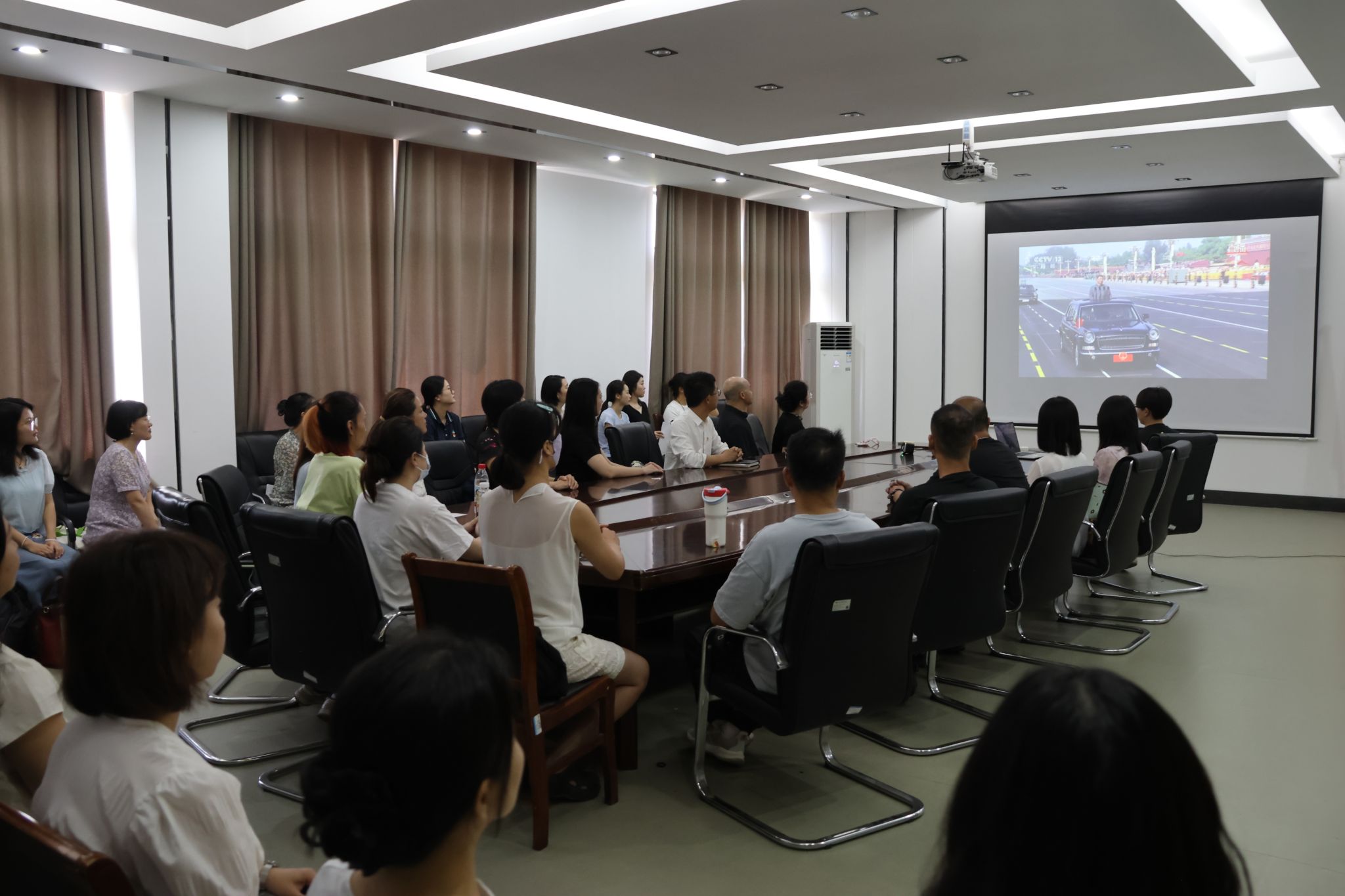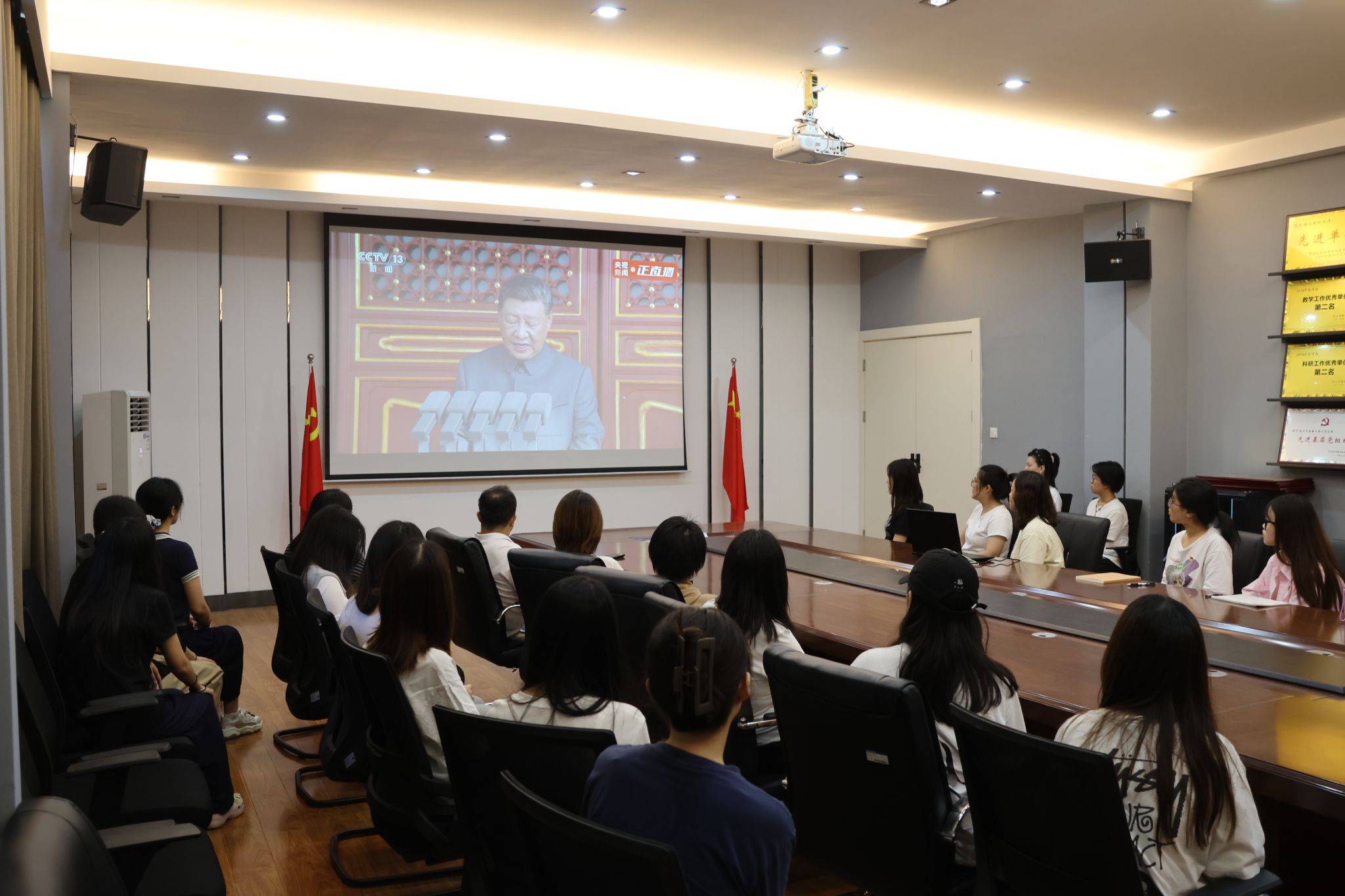 学校各单位开放多媒体教室、阶梯教室、多功能放映厅、楼栋功能房等设置直播点,组织师生收听收看。