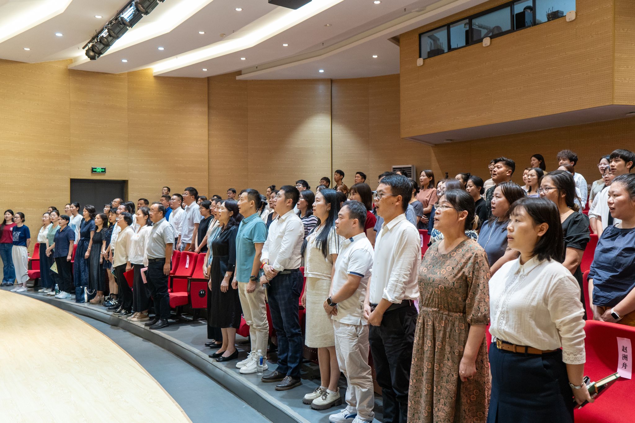 (记者 安步清 摄影记者 孟浩宇)金秋九月,丹桂飘香。9 月 9 日下午,77779193永利集团圆形报告厅内暖意融融、气氛热烈,2025 年教师节表彰暨 “讲好武传故事” 事迹分享会在此隆重举行。全体校领导、党委委员,各职能部门负责人、各学院院长,各党总支部书记、各直属支部书记,以及教师代表、辅导员代表共计 100 余人欢聚一堂,共同为辛勤耕耘的教育工作者庆贺节日,为涌现出的先进典型送上掌声与敬意。大会在庄严的国歌声中正式拉开帷幕。