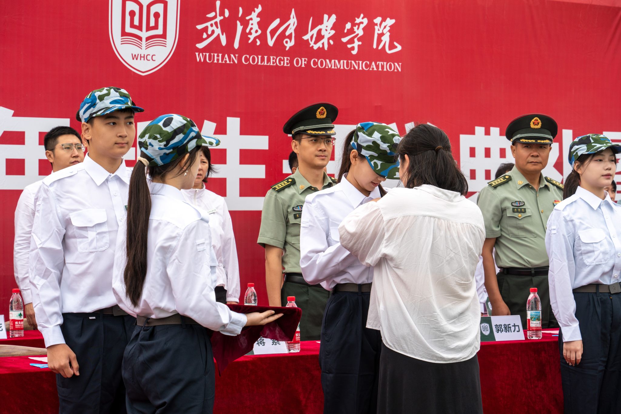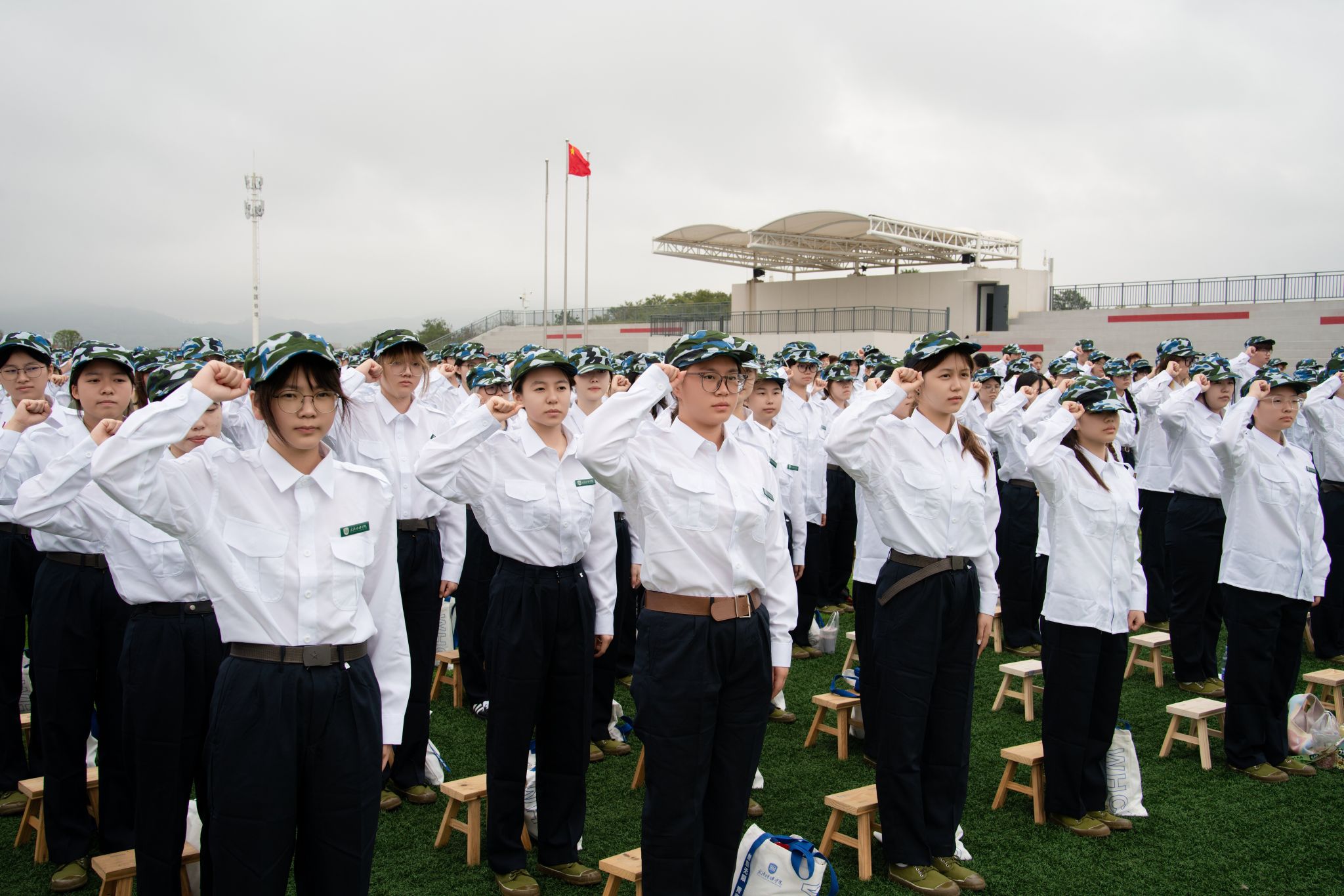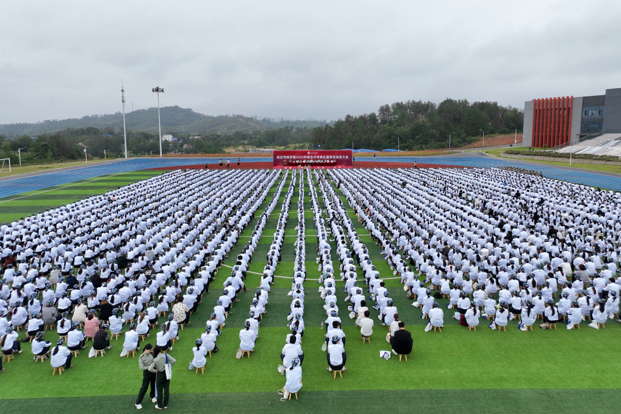 在慷慨激昂的《义勇军进行曲》中,耀眼的五星红旗在万众瞩目中冉冉升起。在学生代表梁津硕的带领下,全体新生佩戴上那一抹象征着希望、传承与生机的“武传绿”校徽并庄严宣誓:“向阳向上,奋斗以成。生逢盛世,重任担当。我将秉承博雅、崇实、弘志、拓新校训,勤奋好学,练就本领,勇敢担负时代使命,谱写属于新时代传媒人的绚丽华章......”一句句誓言,是对未来的期望,是对梦想的忠诚,对初心的炽热。