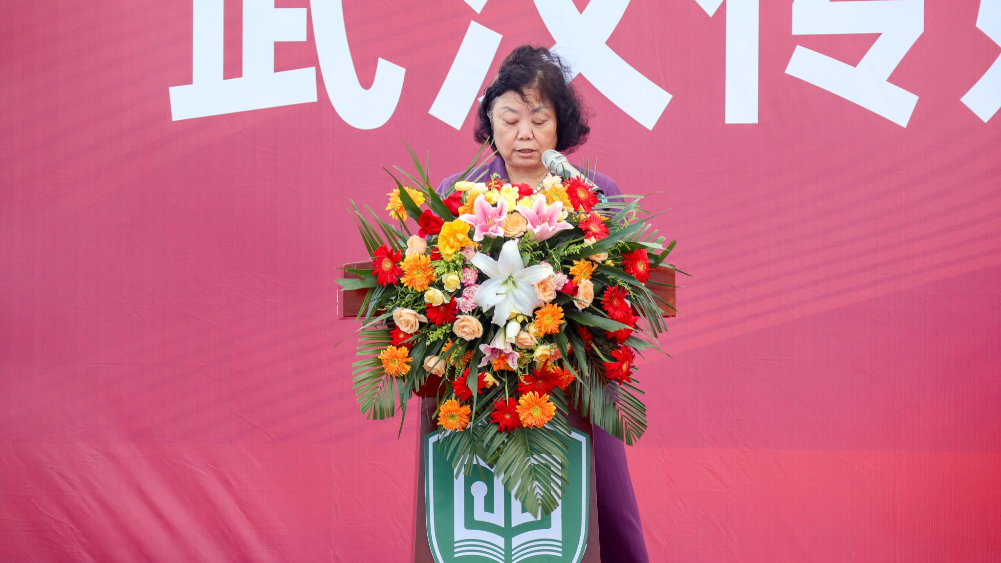 校党委副书记、常务副校长宗微代表学校向承训部队赠送锦旗,感谢他们在军训期间的辛勤付出和无私奉献。