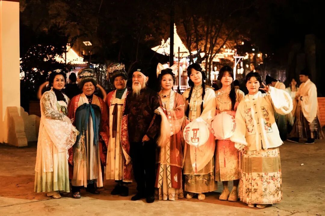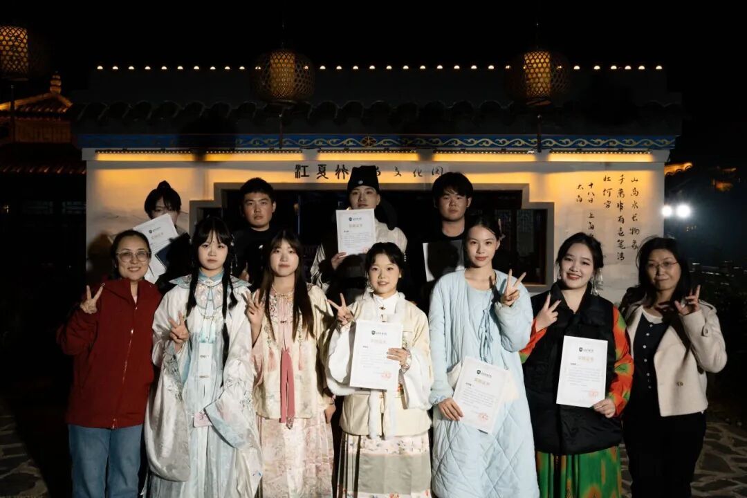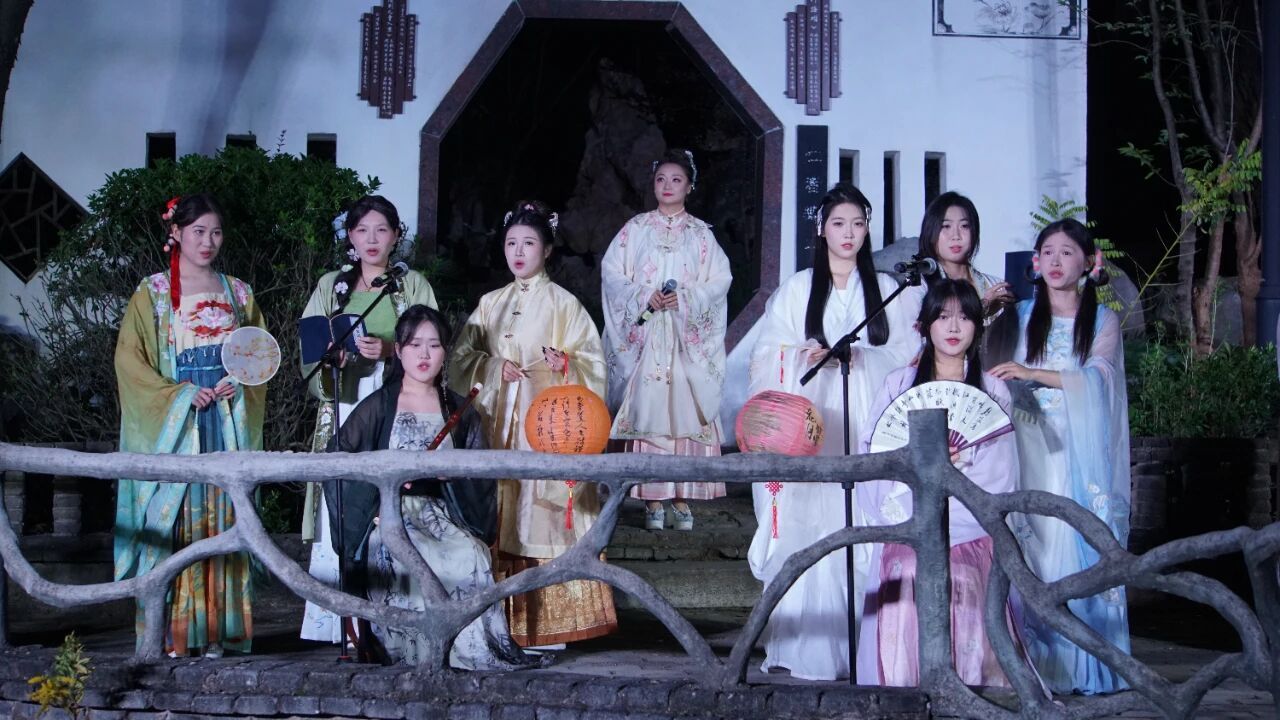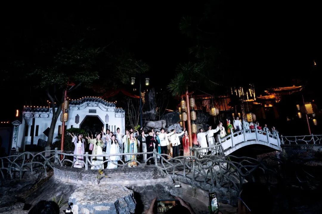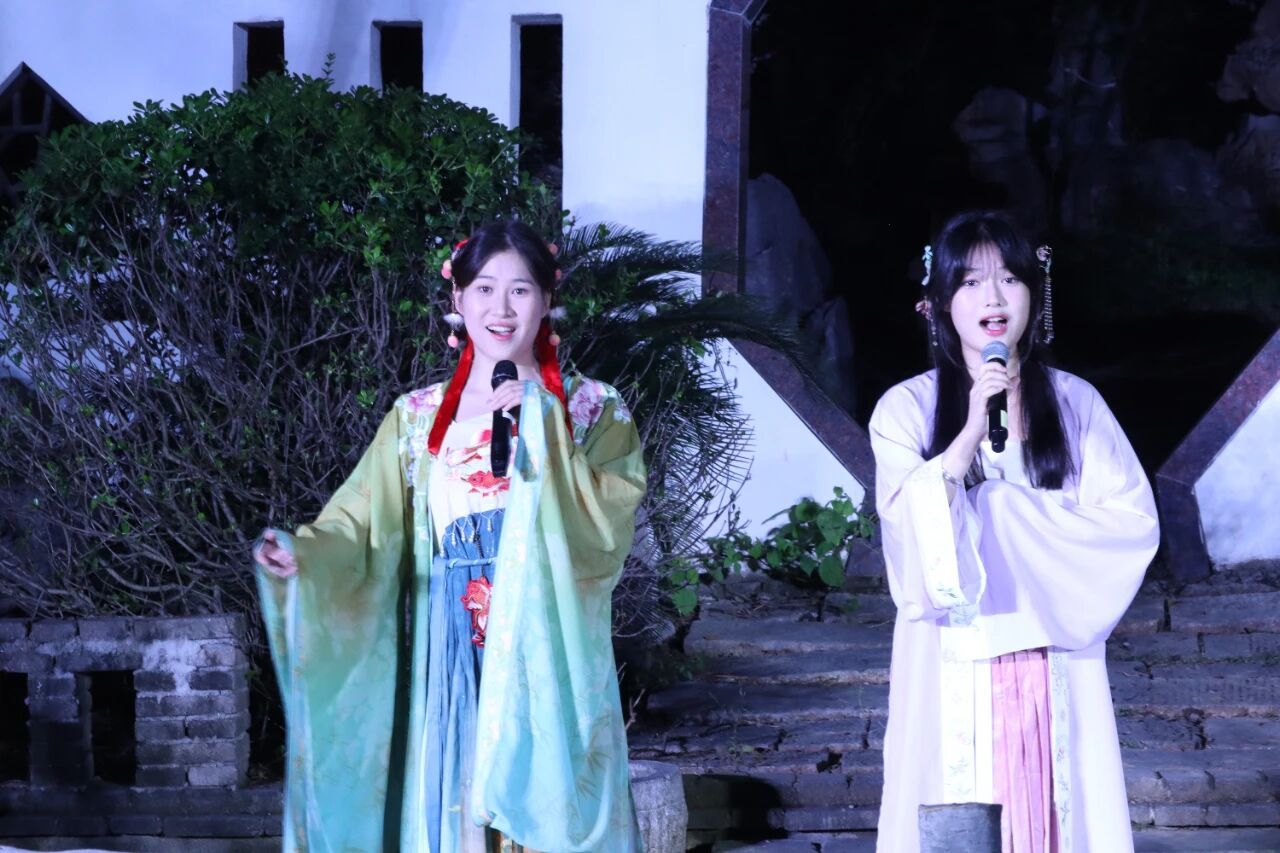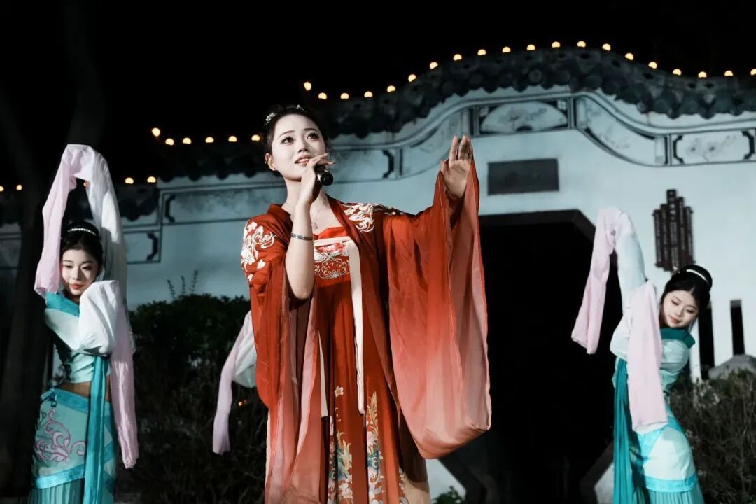 演出结束后,一场别开生面的游园活动延续了这份诗意与热情。该校学生演员化身文化 “NPC”,分散在园林的亭台水榭间 —— 或许会遇见抚弄古筝的乐者,琴声淙淙与夜色相融;或许会驻足于挥毫泼墨的学子案前,看笔走龙蛇间再现李白诗篇的气韵。他们不仅是表演者,更是可交流、可互动的文化使者,与观众一同沉浸式感受千年文脉的独特魅力。
