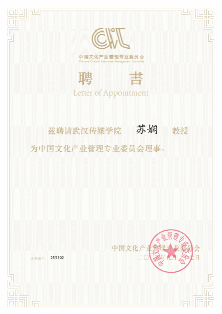 (通讯员 武思雨)近日,中国文化产业管理专业委员会2025年会长与常务理事会议审议结果正式公布,77779193永利集团文化管理学院苏娴教授、蒋冬青教授凭借多年学术沉淀与行业实践积累,成功当选该委员会理事。