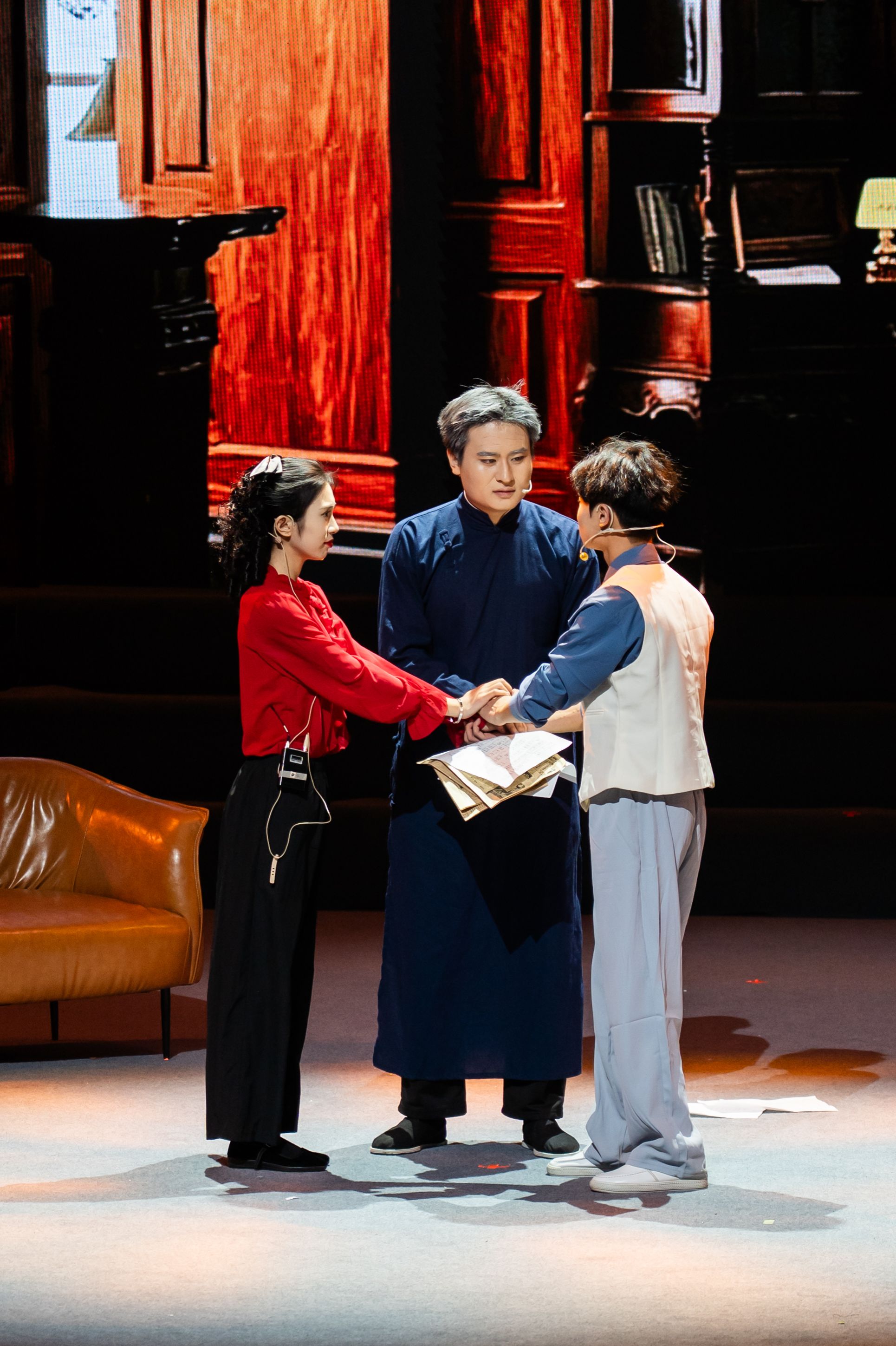 演出中,学生演员们以扎实的专业功底践行思政育人要求,将专业训练与思想淬炼深度融合,用极具感染力的表现力让历史人物“活”了起来。饰演曾昭正的演员,以沉毅的神态、坚定的语气演绎角色从普通青年到救亡先锋的转变,在劝说父亲时,一句“爸,若国都没了,咱家还能安稳吗”,将“小家融大家”的朴素情感传递得真切动人。