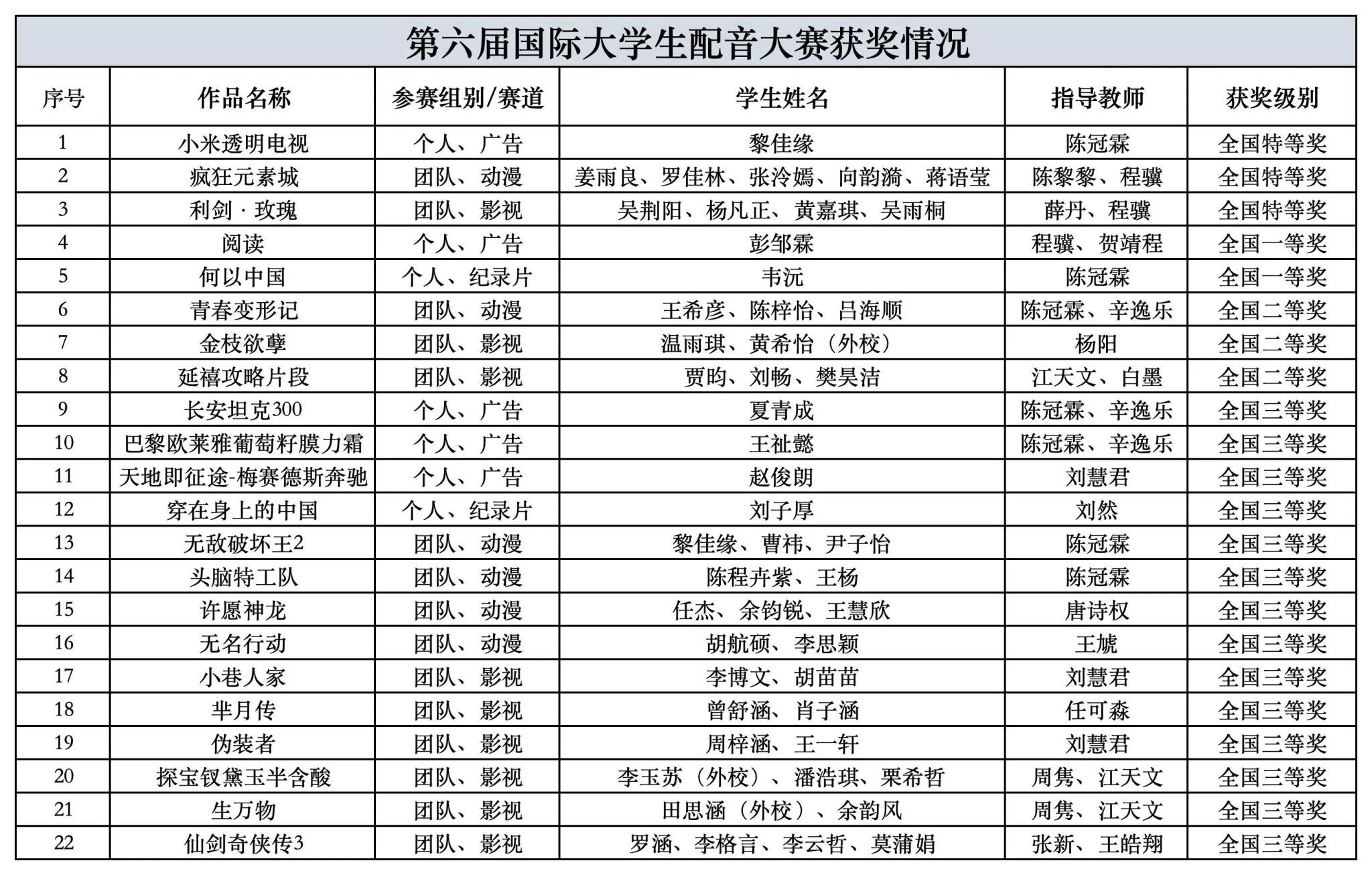 声耀荣光,笃行致远。此次佳绩是对师生努力的肯定,更应成为前行动力。愿同学们以声为翼,深耕语言艺术,用匠心与真情打磨作品;期待更多人接续奋斗,在配音领域续写辉煌!