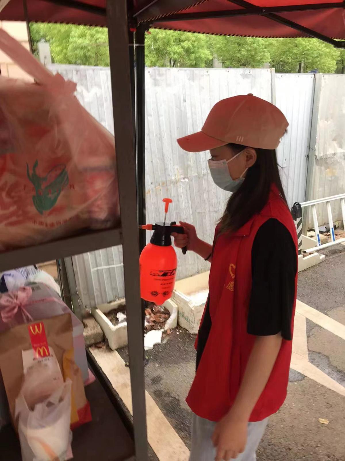 同时,学院党员服务站成立外卖消杀专班,组织志愿者参加外卖消杀流程培训,叮嘱志愿者在做好自身防护的前提下,认真做好外卖管理工作,并指定专人统一接收、统一消杀,并确保学生安全取走外卖,确保学生和外卖员、未经消杀的外卖“零接触”。