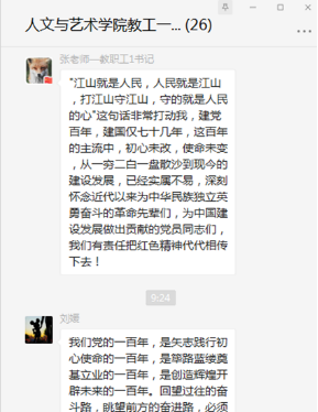 人文与艺术学院党总支部本次组织的集体观看庆祝中国共产党成立100周年大会活动顺利完成。本次活动,在全院教师内部、学生内部掀起了热烈的学习思潮。教师们、学生们纷纷发表了自己的观看心得和学习体会。本次集中观看活动不仅帮助全院师生一同回顾了中国共产党百年的光辉历程,也激发了老师们、同学们爱国爱党的热情和历史责任感、使命感。