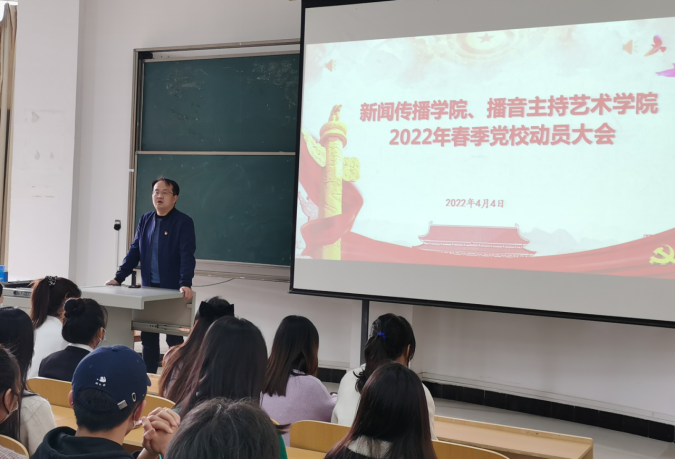 2022年4月4日中午,新闻传播学院分党校2022年春季开班式在3201召开,新闻传播学院党总支部书记侯亮荣出席大会并做动员讲话,会议由蒋宇杰同志主持,各年级辅导员出席大会,第36期党校全体学员参加会议。