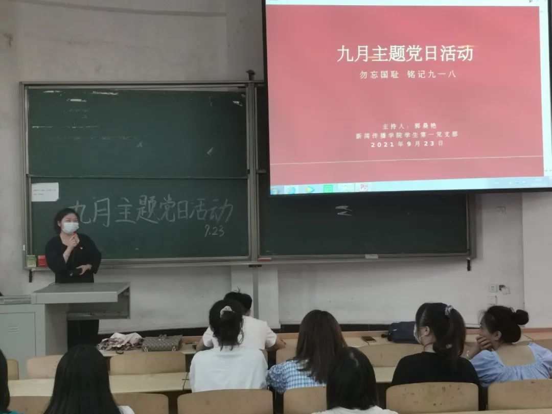 9月23日新闻传播学院学生第一党支部,在1101教室展开《勿忘国耻,铭记九一八》九月主题党日活动。