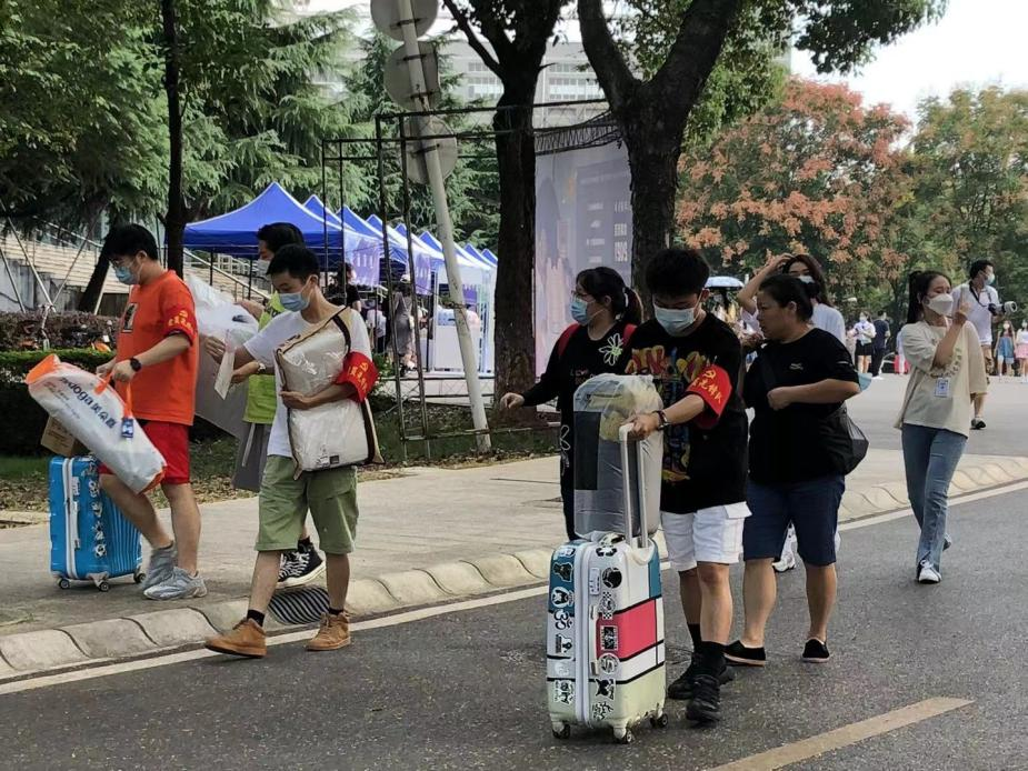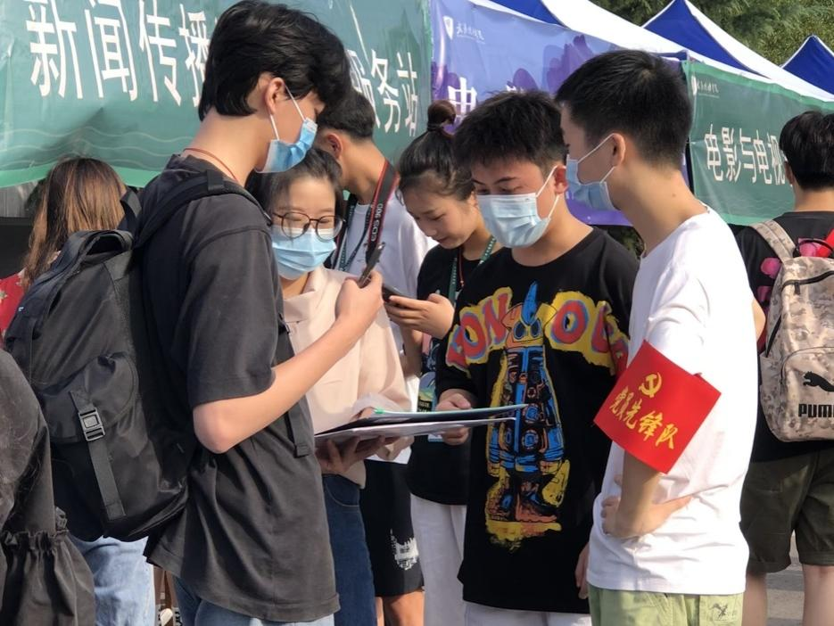 真情呵护,用心营造良好迎新氛围。迎新筹备期间,新闻传播学院学生党员志愿者们将《学生手册》学习前置,集中进行了线下培训会,以期高效率高质量地完成迎新工作。同时,做好了新生宿舍检修和卫生清扫工作,协调宿舍安排和宿舍用品发放工作。设立了新生事务咨询服务点,就新生报到、贫困生绿色通道、参军入伍等事宜做了提前筹备;此外,校园内还设置有专门的校内摆渡车,帮助打通新生从校内报到点到宿舍楼的“最后一公里”。