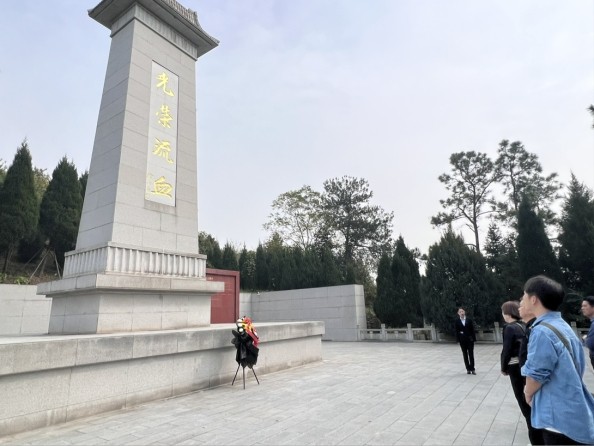 在纪念碑前,文化管理学院党员师生团队深深地向革命烈士默哀致敬。在徐海东大将及亲属烈士纪念馆里,徐海东骑着战马的雕像仰头眺望远方,好似在看中国如今的繁荣昌盛,国泰民安。