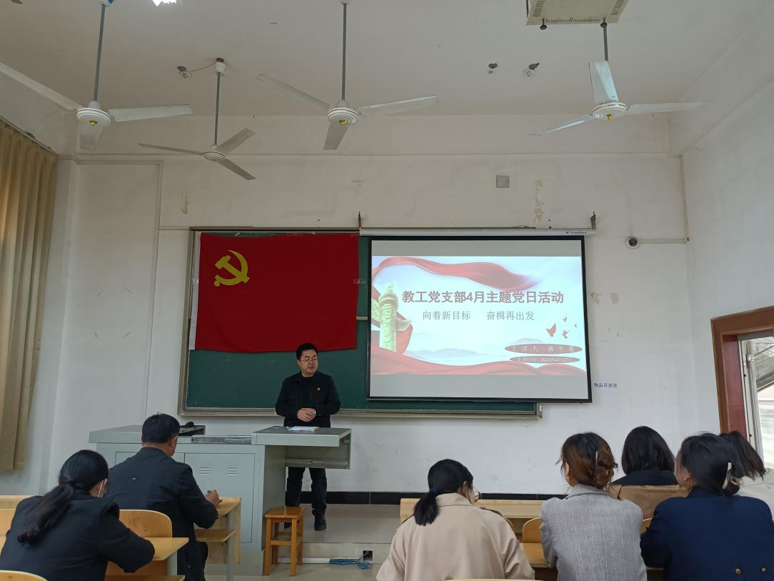 为深入学习贯彻习近平新时代中国特色社会主义思想,切实做好党建工作的建设发展,文化管理学院教工党支部于4月27日中午12:00在5204教室开展四月主题党日活动,活动由蒋冬青同志主持,全体支部党员参会。