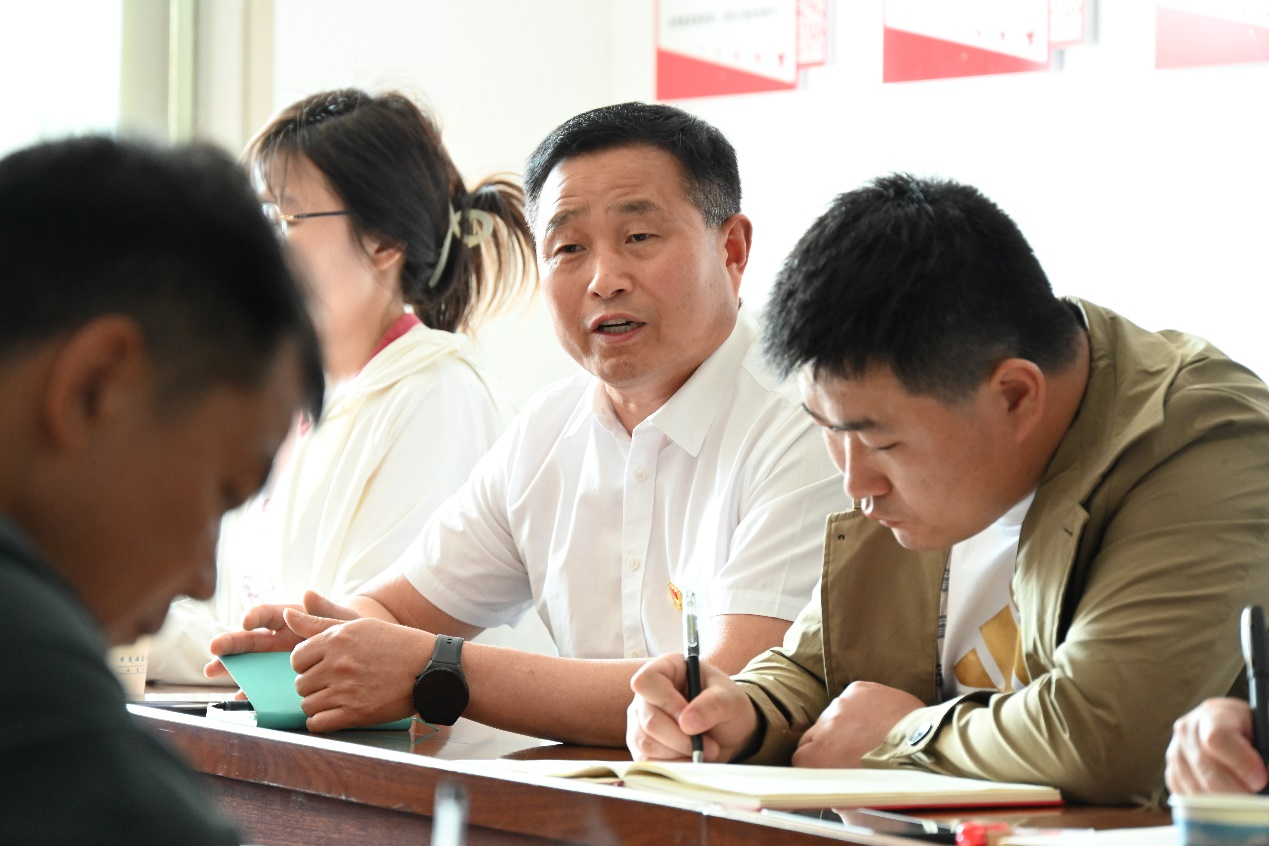 交流座谈会上驻村第一书记、工作队长肖帅,村党支部书记熊存志分别代表驻村工作队、村委会对学校的支持和帮助表示了由衷的感谢,并介绍了西庄村目前的发展状况和前进阻力,表达了他们对“数兴农商”、“产业升级”和“创新发展”的理解以及殷切期望,并指出了要以村民为本,走群众路线,跟随国家政策,合理开发西庄村资源,努力实现产业、人才、文化、生态、组织五大振兴,带领村民们走共同富裕之路!
