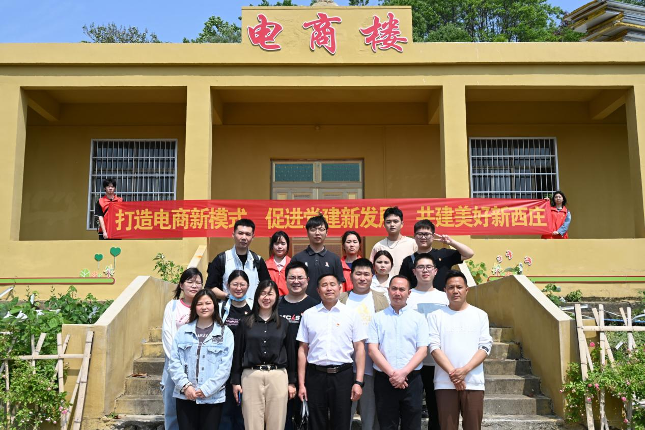 文化管理学院党员师生团队和崇阳县乡村振兴局徐局长、石城镇党委副书记李书记、驻村工作队及西庄村干部们在电商楼前合影留念,大家期待不久的将来能看见电商楼的正式投入使用,为西庄村带来新机遇!