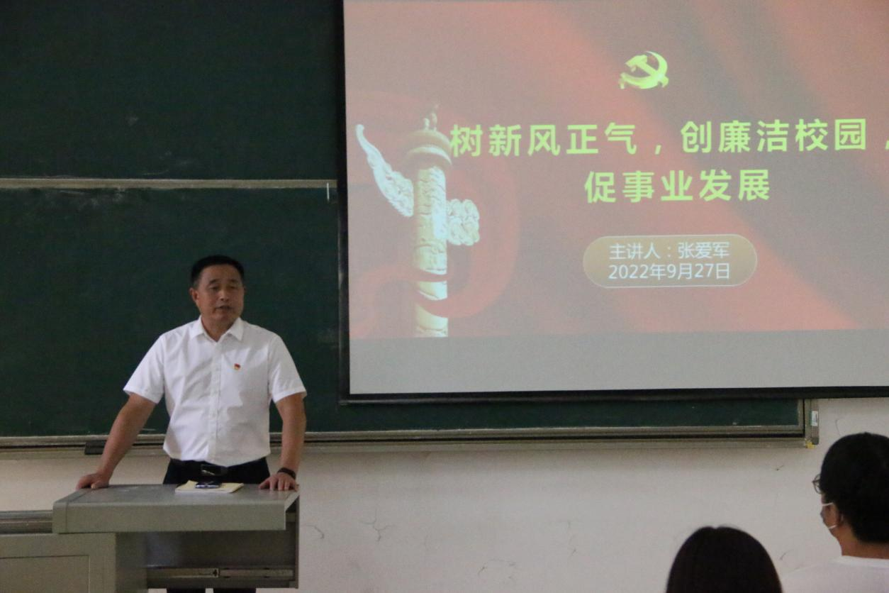 为深入学习促进清廉武传建设,推动全校党员干部以优良作风奋进新征程、建功新时代,为学校健康发展营造风清气正的良好政治生态,文化管理学院党总支书记张爱军于2022年9月27日中午12点在5204教室给全体党员上了党风廉政建设专题党课:树新风正气,创廉洁校园,促事业发展。