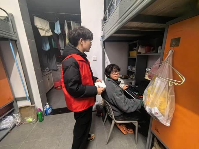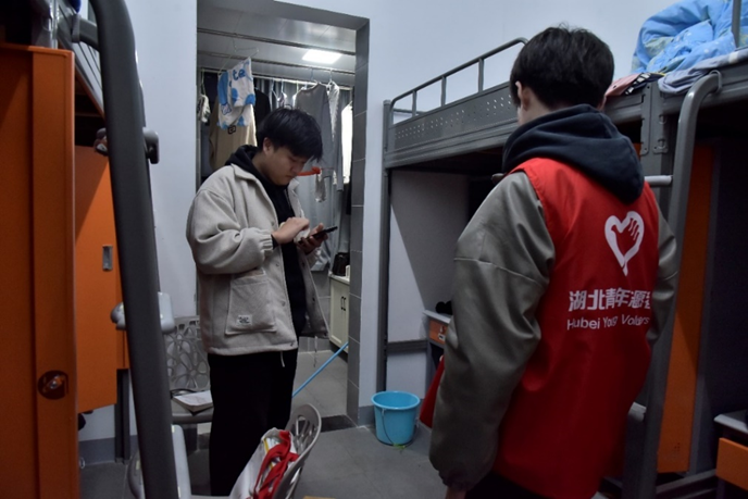 排查期间,志愿者们同步开展“无烟校园、消防安全教育”活动,利用案例、视频、图片等形式向同学们讲解消防安全知识和宿舍安全隐患。