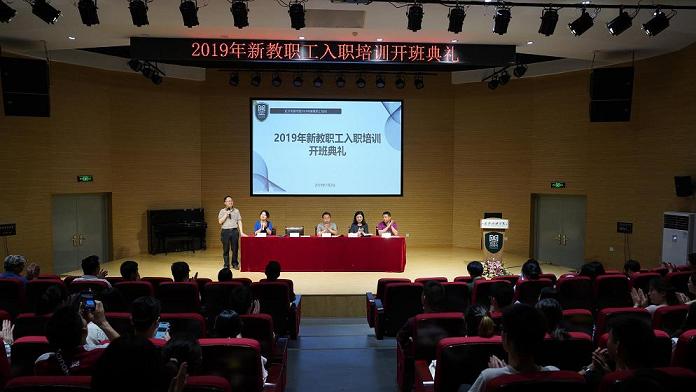 7月2日上午,永利集团在行政楼圆形报告厅举行2019年新教师入职培训开班典礼,拉开了2018-2019学年新进教职工培训的帷幕,全体校领导及各二级学院、主要职能部门负责人出席典礼,本学年新进的76名教职工参加了典礼,典礼由副校长胡学知主持,校党委书记郭新力代表校党委、校行政领导班子致欢迎辞并做培训动员讲话,校长助理、人事处(教师发展中心)处长姚晓菊同志为新教职全面解读了湖北省岗前培训的总体安排和永利集团今年两个阶段两周的校本培训方案及考核与纪律要求。典礼结束后,校领导、与会各学院及职能部门负责人与新进教职工合影留念。