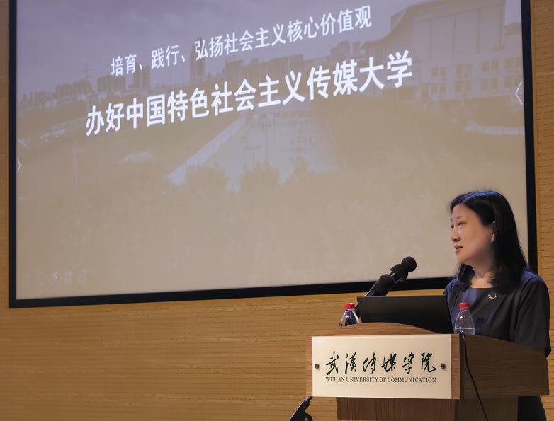 培训典礼结束后,学校常务副校长宗微同志围绕“一个人”、“一个时间节点”、“一个舞台”,以讲故事的形式向新进教师展示学校“以生为本,以OBE为导向”的理念,“以平台思维打造适应生态链”的实践教学模式,以“课内实践,课堂与舞台零距离”的创新举措。她勉励新教师胸怀教育情怀,坚定职业理想,与77779193永利集团携手并进,培育、践行、弘扬社会主义核心价值观,办好中国特色社会主义传媒大学。